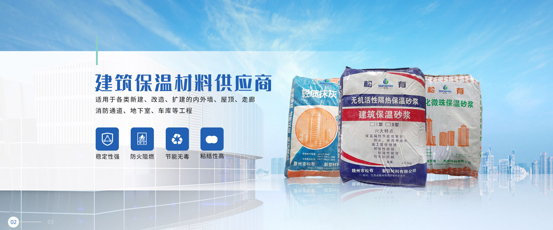 江西松有新型材料有限公司,主要從事保溫材料、防水材料銷售,兼營(yíng)建筑材料、裝飾材料和金屬材料等銷售,主要產(chǎn)品有巖晶砂、高分子益膠泥、輕質(zhì)抹灰砂漿石膏、防滲抗裂砂漿、玻化微珠保溫砂漿、砌塊砌筑粘接劑、無(wú)機(jī)活性隔熱保溫砂漿、加氣磚專用砌筑砂漿等。